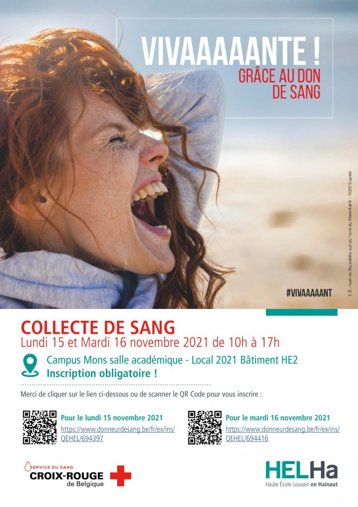 Ces 15 et 16 novembre 2021, la Croix-Rouge de Belgique réalisera une collecte de don de sang sur notre campus de Mons.