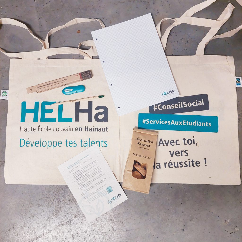 Pour la première fois, cette année, le Conseil Social de la HELHa a offert aux 4250 étudiants de première année un Ecopack de bienvenue. La distribution a eu lieu la semaine du 17 octobre 2022 sur les 15 implantations de la HELHa.