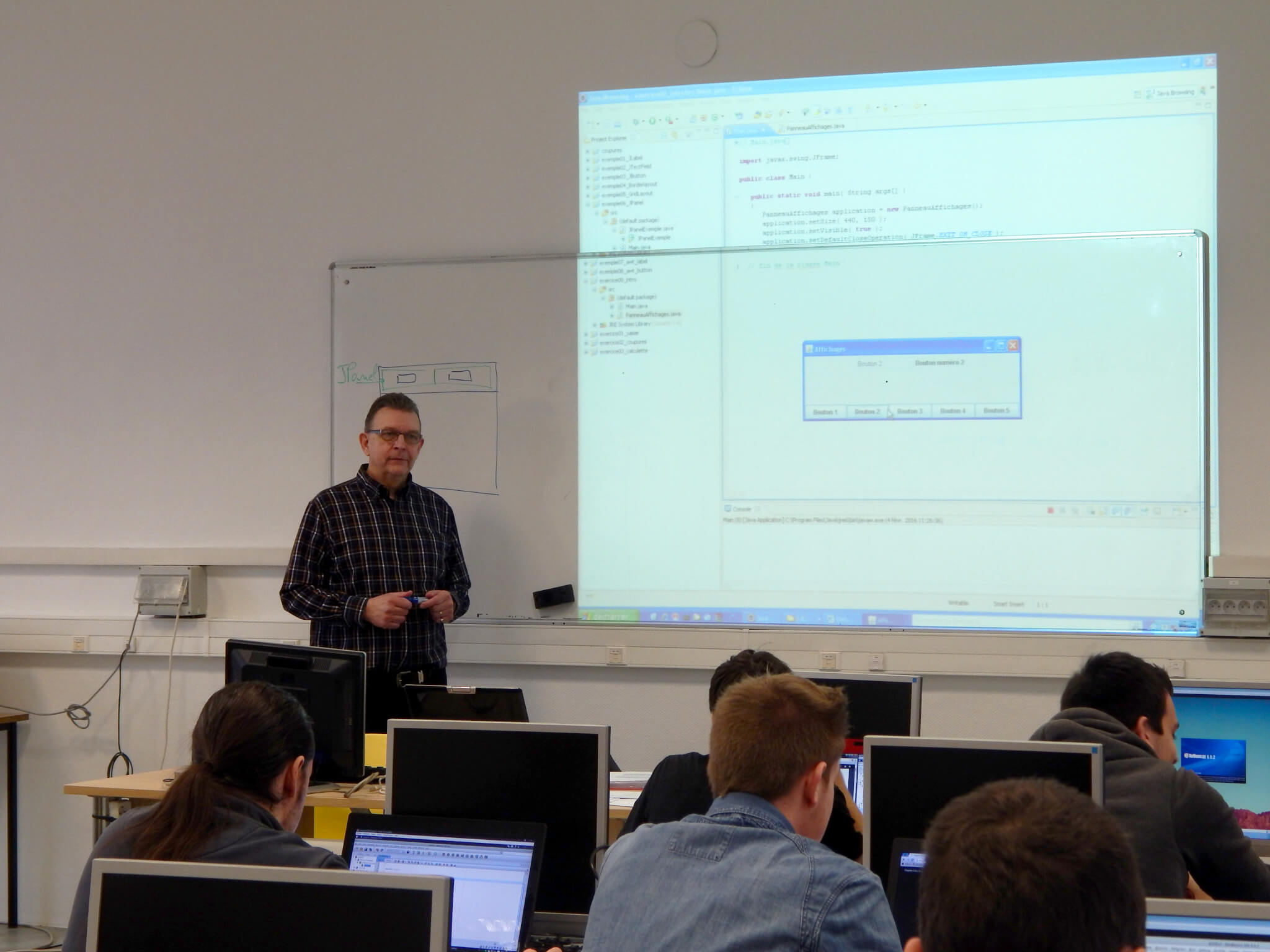 C’est devant une trentaine d’étudiants français, que chacun d’eux a dispensé une formation. Celle donnée en anglais par Anne-France Quinet traitait du téléchargement illégal. José Stévenne, quant à lui, a donné un cours intitulé « Le développement d’interfaces graphiques en langage Java ».