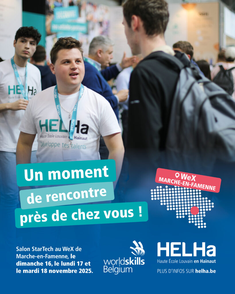 Du 16 au 18 novembre 2025, la Haute École Louvain en Hainaut (HELHa) participera à un événement devenu incontournable concernant les métiers techniques, technologiques et de services. Les Startech’s Days sont organisés chaque année au WEX de Marche-en-Famenne. Ils réunissent des centaines de jeunes, d’enseignant·e·s et de professionnel·le·s autour de démonstrations, ateliers et compétitions pour […]