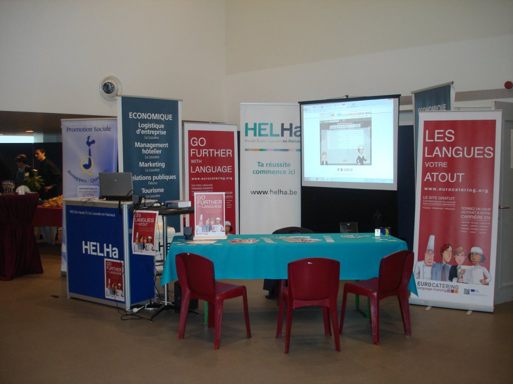 La HELHa était présente ce lundi 20 octobre au Lotto Mons Expo dans le cadre du Mons Horeca Day pour présenter le cours de langue en ligne (www.eurocatering.org) spécifique pour l’HORECA.