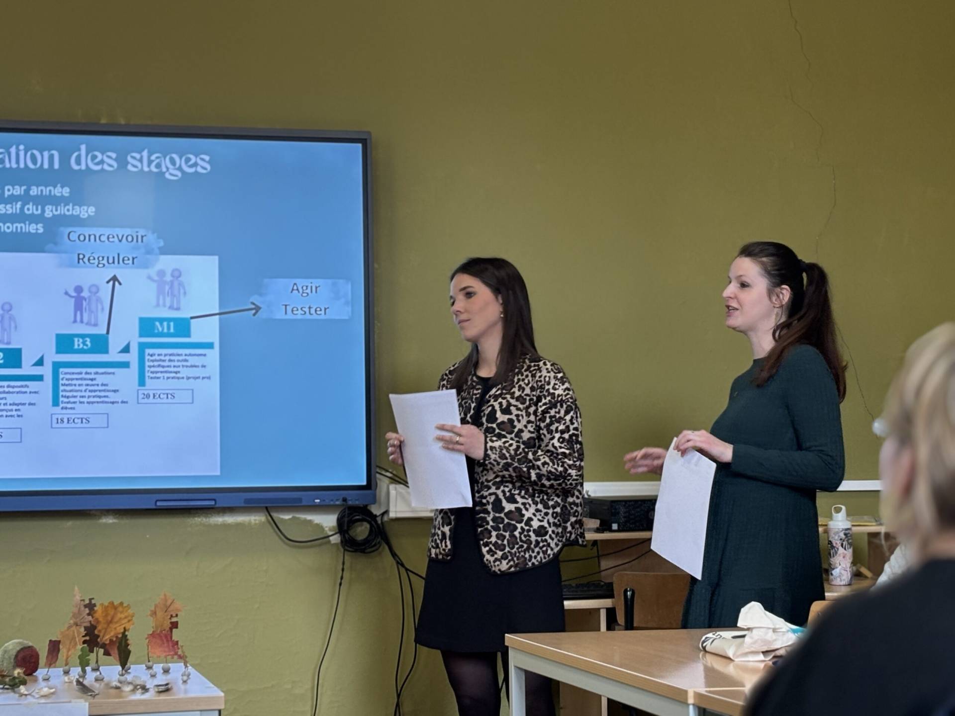 Parmi les thématiques centrales de l’événement : l’évolution de la formation des futur·e·s enseignant·e·s. Aujourd’hui, les étudiant·e·s réalisent davantage de stages, et ce, dès leur première année d’étude. Cette immersion progressive en milieu scolaire redéfinit le rôle des maîtres de stage et les exigences attendues pour les étudiant·e·s. L’après-midi a permis d’éclaircir les attentes et de présenter concrètement la mise en place de cette réforme au sein de la HELHa.