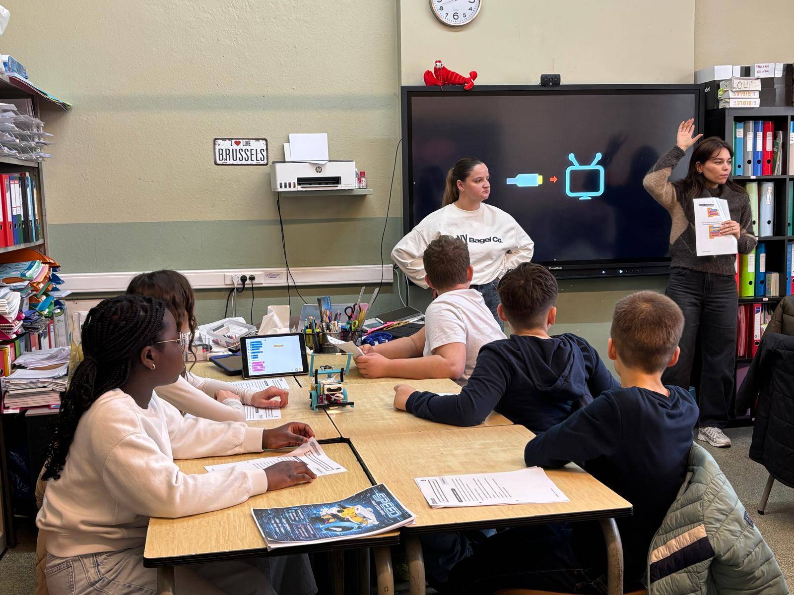 « C’était vraiment un plaisir de les aider, ils posaient plein de questions, ils étaient super intéressés. Au début, c’était un peu stressant, mais après ça a été tout seul, ils sont vraiment adorables ! On n’avait jamais donné cours de numérique auparavant. En tout cas moi je n’avais jamais eu l’occasion, donc ça m’a appris que je peux donner plein de cours différents : je peux aller donner cours avec les robots, je peux donner cours de numérique », explique Léa, étudiante en 2e année du Master à Loverval.