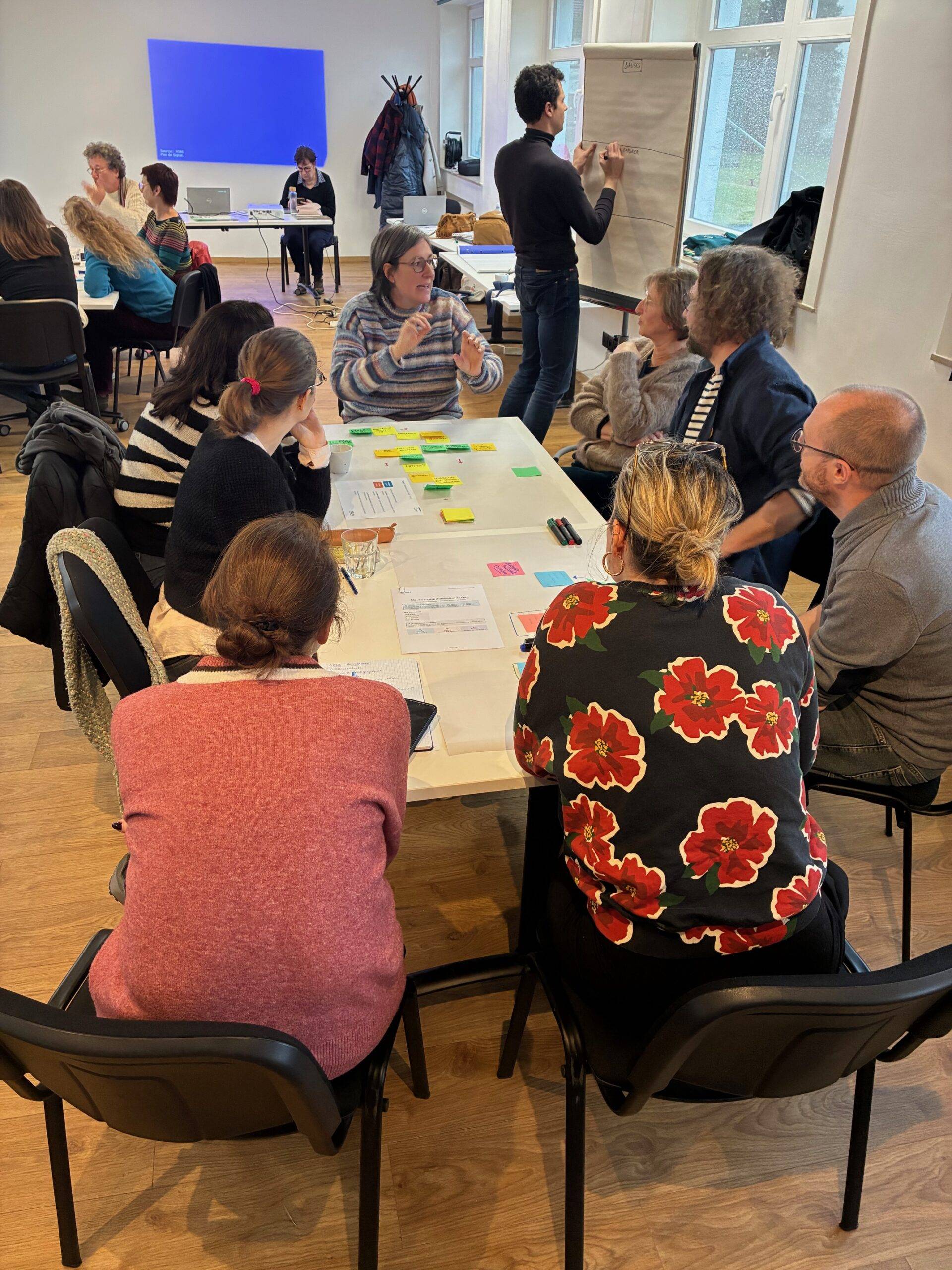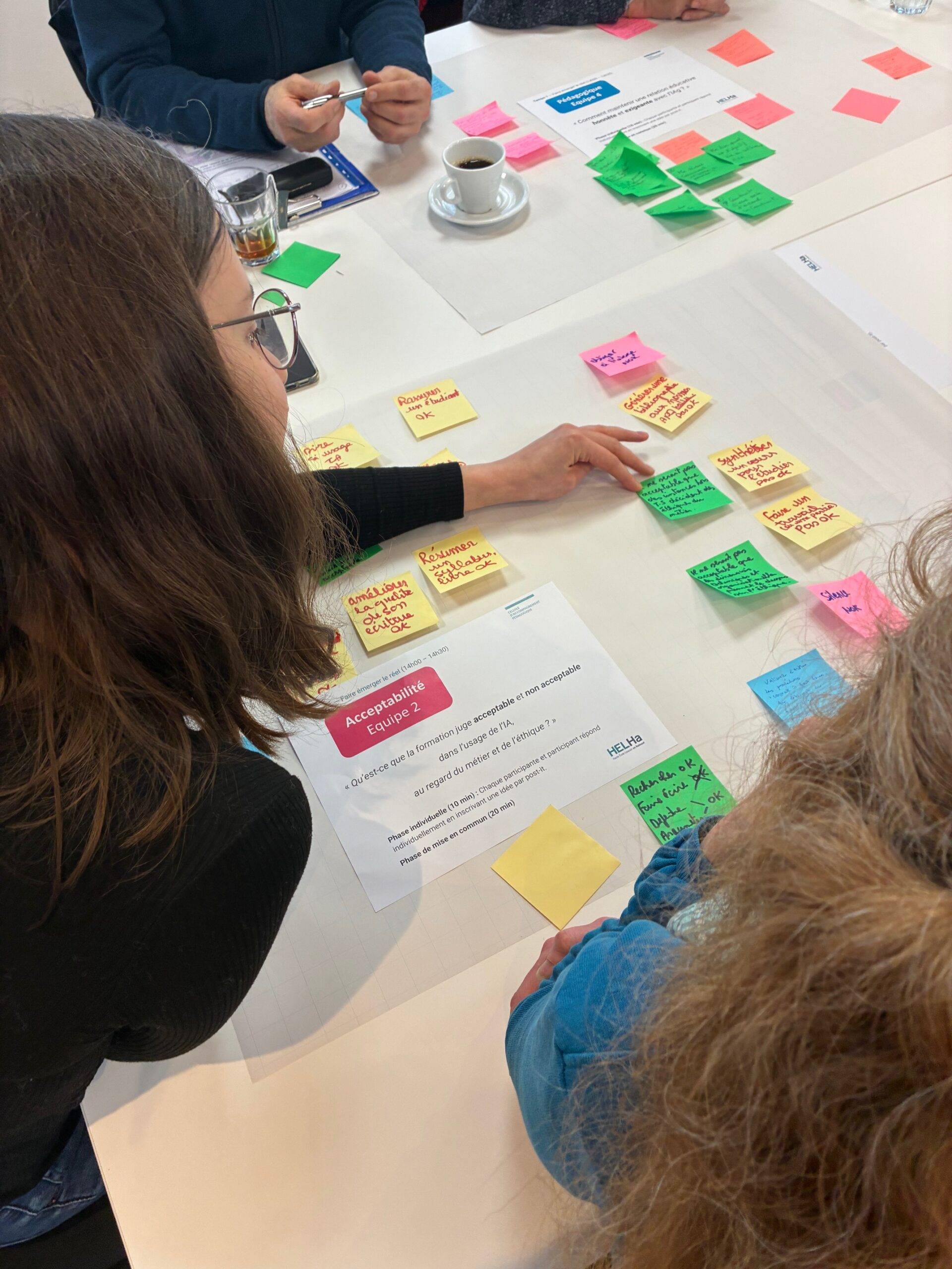 L’objectif ? Faire émerger un cadre partagé de responsabilité pédagogique face à l’IA, en identifiant des balises, des zones floues et des priorités collectives. Pour ce faire, les participant·e·s ont travaillé en équipes sur trois dimensions : l’acceptabilité et la responsabilité professionnelle, la posture pédagogique et la relation de confiance, ainsi que l’accessibilité et l’inclusion.