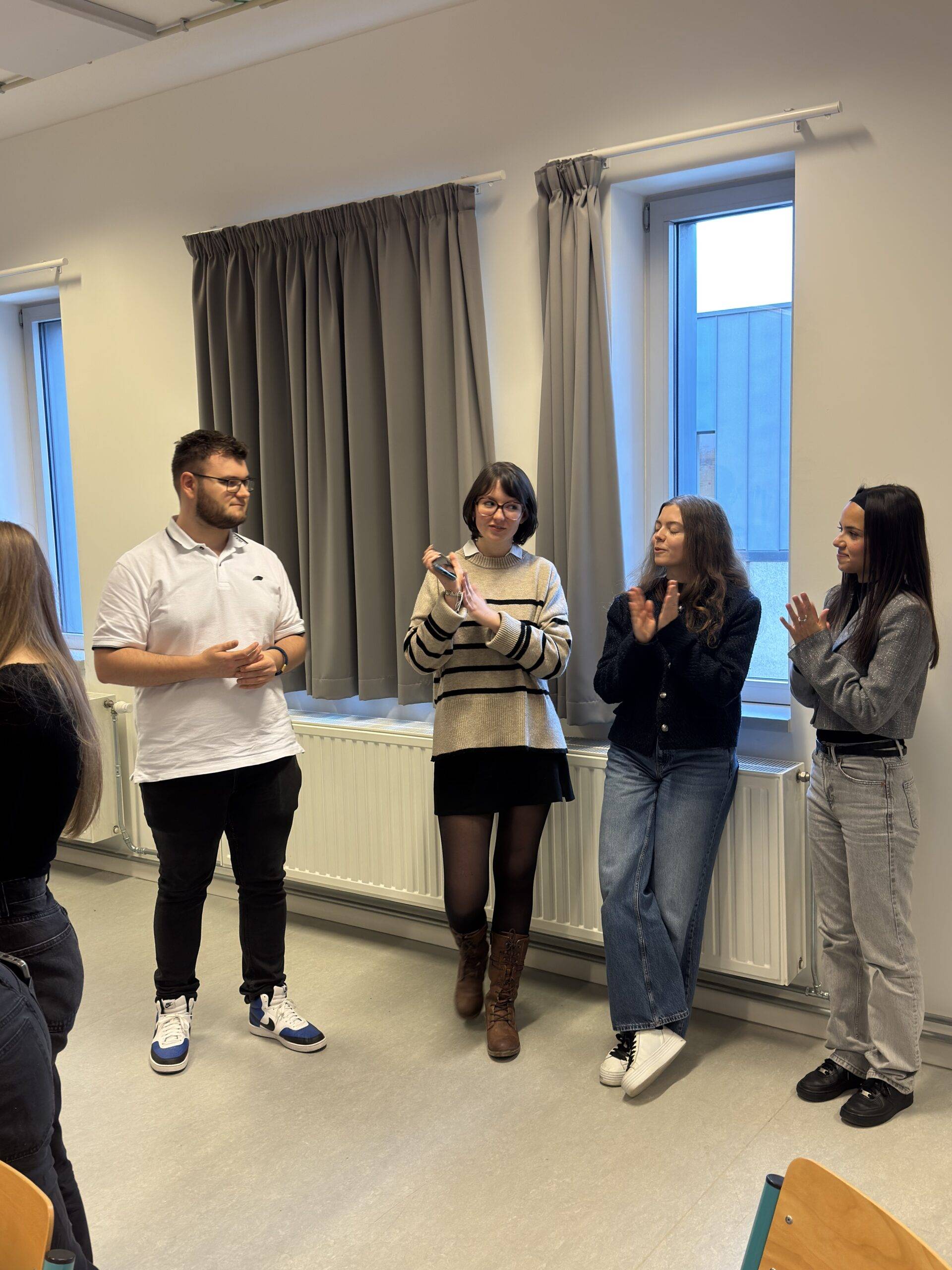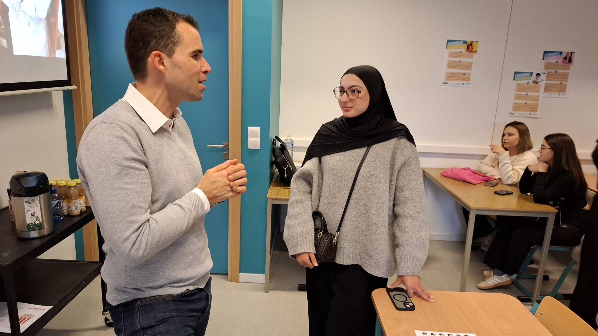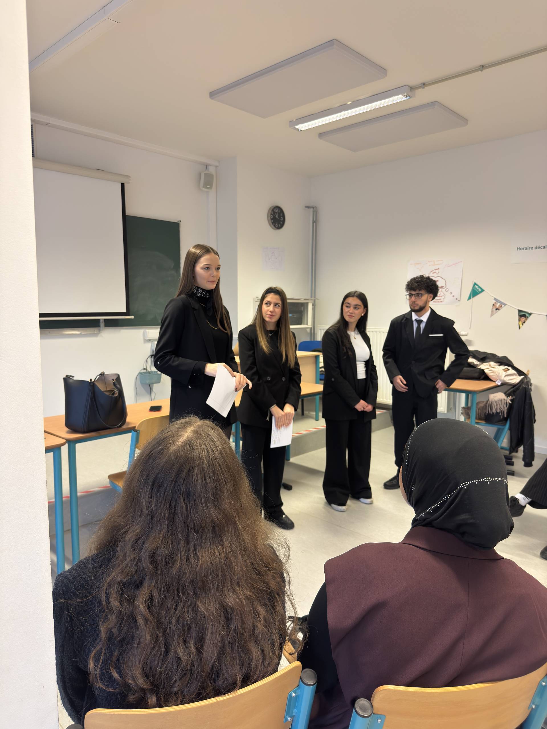 « Je suis venue ce matin pour parler de mon expérience et encourager les futurs RP ou communicants à ne jamais rien lâcher. (…) Pour aussi les encourager pour les langues, car elles sont très importantes dans ce métier. » – Lola, diplômée en 2024 et actuellement étudiante du Master en Communication stratégique (en alternance)