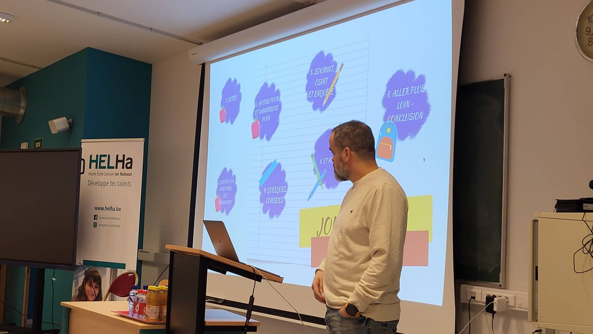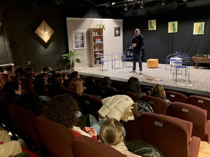 L’après-midi s’est poursuivie entre le Théâtre de La Ferme de Martinrou, le Théâtre de L’Ancre et un atelier coaching média animé par Caroline Marlair dans les locaux de la HELHa de Montignies-sur-Sambre.