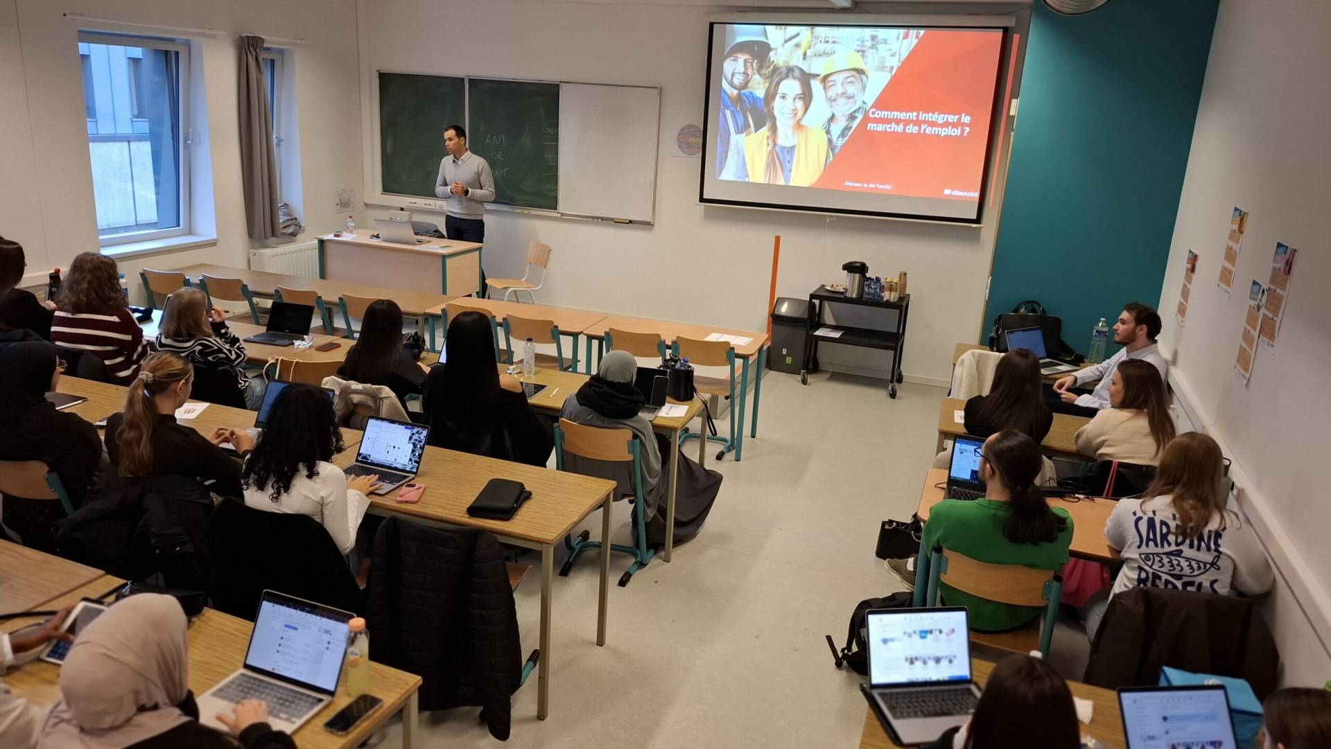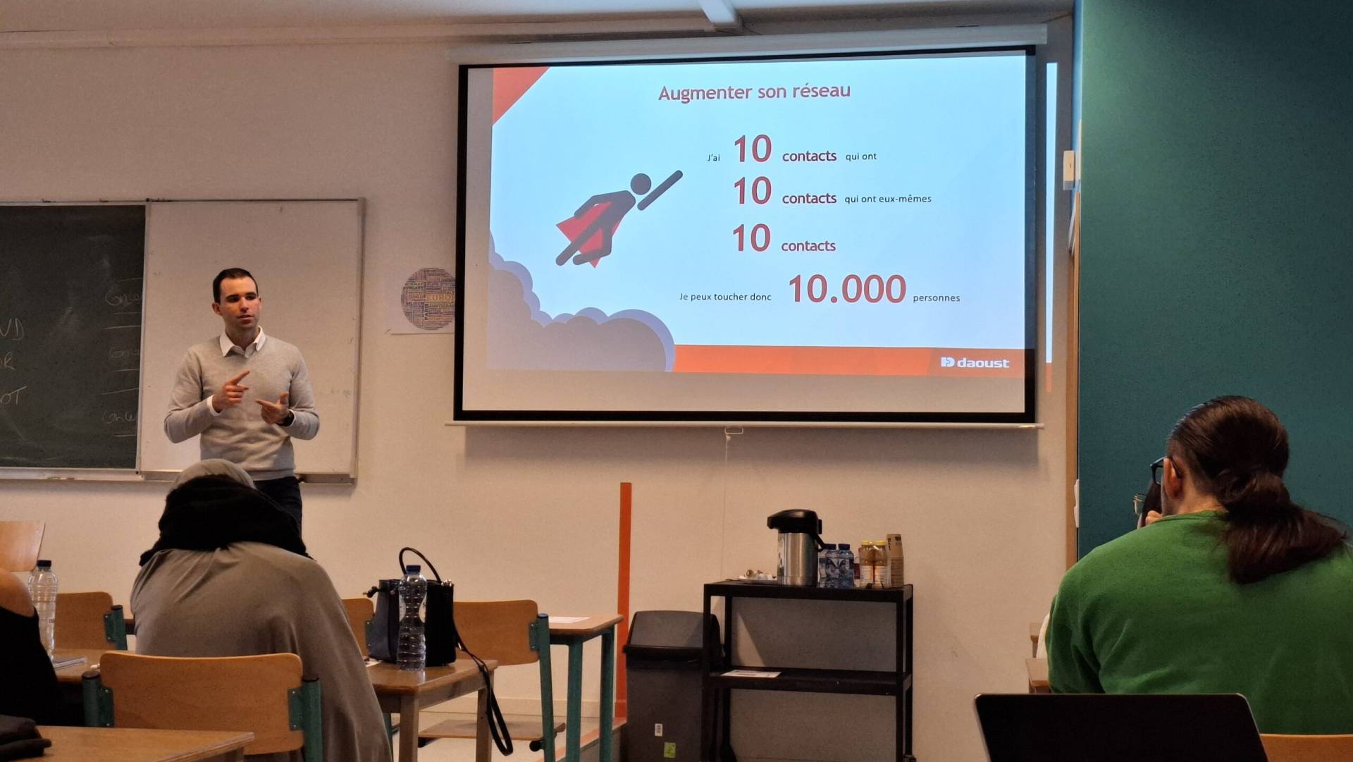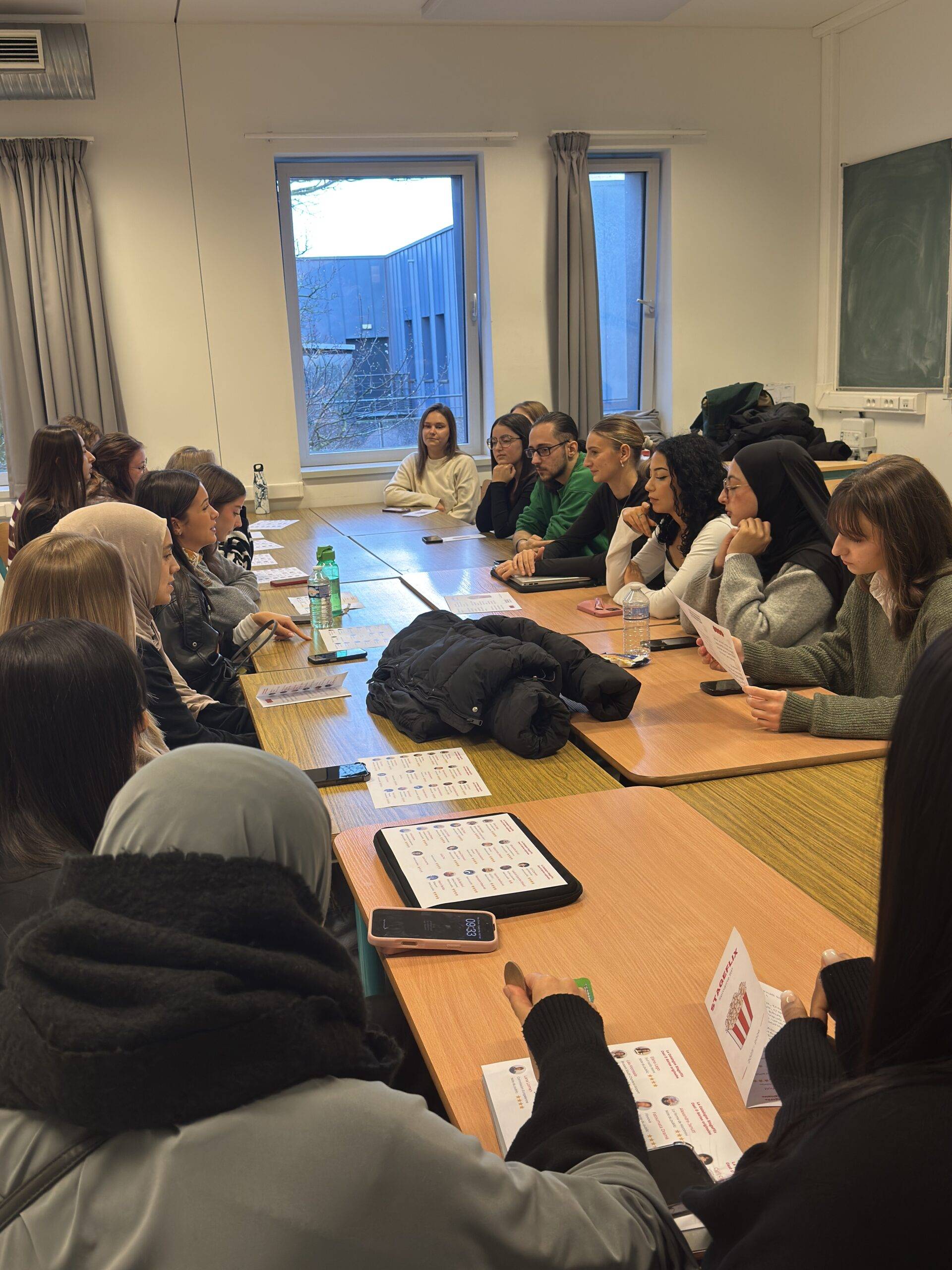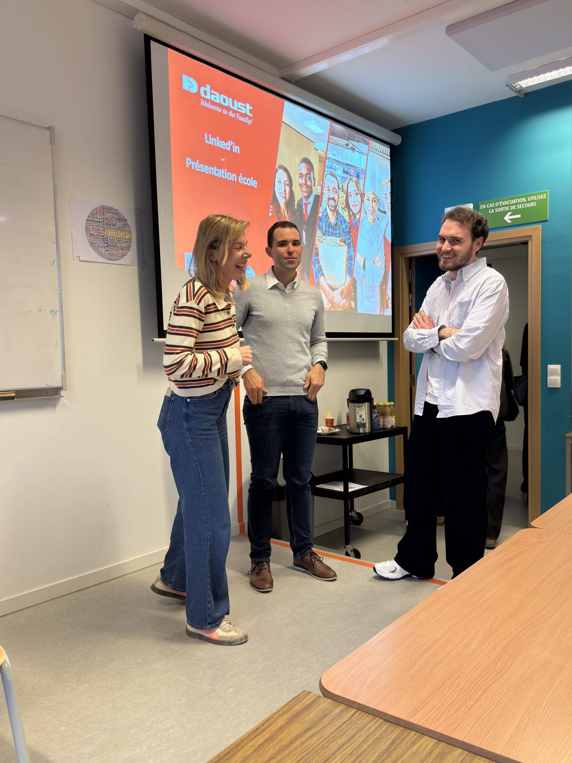 Les étudiant·e·s des années supérieures ont, quant à eux·elles, échangé autour de leurs stages : partage d’expériences, conseils, bonnes pratiques, etc. La journée s’est poursuivie avec une conférence consacrée à LinkedIn, aux relations publiques et à la construction de carrière, animée par Daoust.