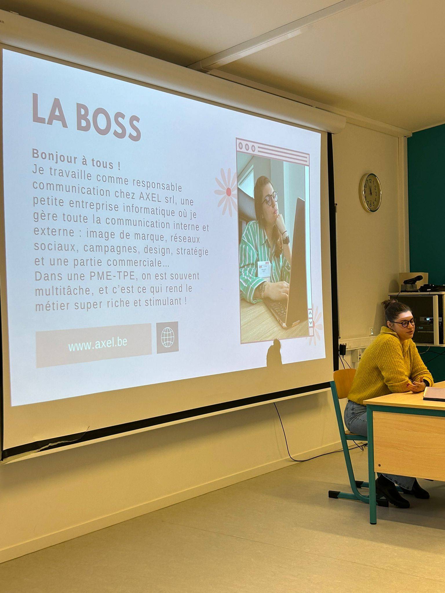 • Une conférence sur le métier de communicante, assurée par Victoriane Wéry (Responsable communication à Axel SPRL)