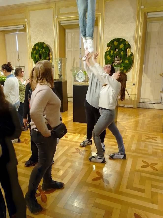 Une seconde visite guidée a conduit les étudiantes à une exposition temporaire, mettant en avant une installation contemporaine de Monsieur Nature intégrant le mobilier du château et une collection d’orfèvrerie ancienne. Les animations spécialement conçues pour un public scolaire ont également été explorées.