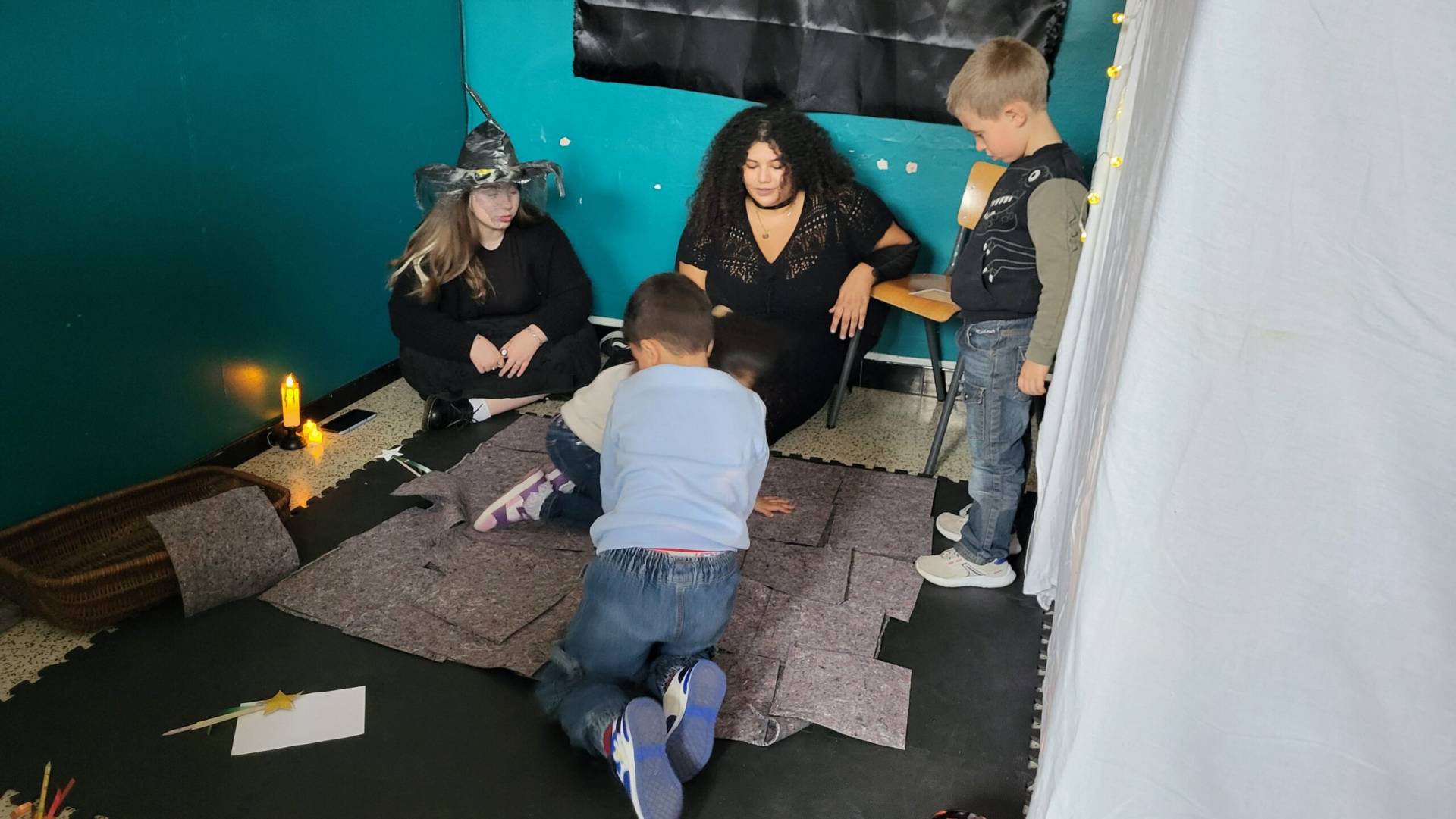 Plusieurs locaux de l’implantation de Gosselies ont été transformés en véritables mondes imaginaires pour accueillir des élèves de troisième maternelle et de première primaire venus d’une école voisine. L’initiative poursuivait un double objectif :